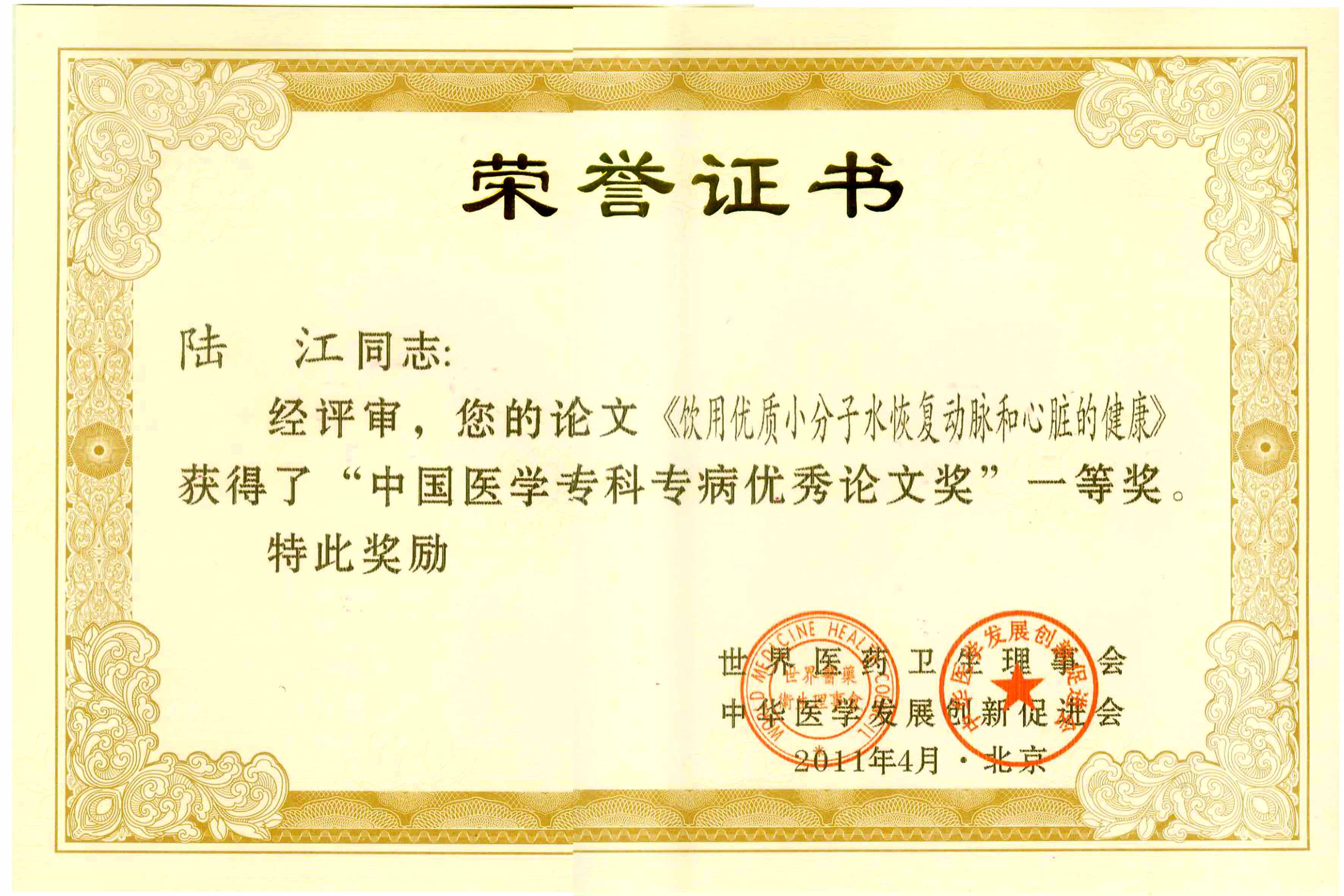 -----我是從事建筑的高工,本來沒有資格去攻克醫(yī)學(xué)難題,卻為了自身健康才扣響醫(yī)學(xué)的大門。由于我1990年患高血壓,因怕中風(fēng)才研究發(fā)明了離子水瓶,我把水處理成微小分子團(tuán)水,飲用后治愈了高血壓。便于1993年底送到三家省級醫(yī)院做臨床試用4個(gè)月。經(jīng)北京和廣西醫(yī)學(xué)專家鑒定:"降脂降壓效果好"," 能擴(kuò)大心腦動(dòng)脈流量,改善心腦電圖以及微循環(huán)","對治療心腦動(dòng)脈粥樣硬化、高血壓、高血脂有良好的醫(yī)療保健作用。""產(chǎn)品的技術(shù)性能和療效達(dá)到了同類產(chǎn)品的國內(nèi)領(lǐng)先水平,經(jīng)廣西醫(yī)學(xué)科學(xué)情報(bào)研究所檢索,未見國外有類似報(bào)道。"中國醫(yī)學(xué)科學(xué)院張正國教授從美國國立醫(yī)學(xué)圖書館數(shù)據(jù)庫存Medline檢索英俄文資料,均未見類似報(bào)告。2000年上市后,我為了對消費(fèi)者負(fù)責(zé)而繼續(xù)觀察研究,一直通過《信譽(yù)卡》和《質(zhì)量跟蹤調(diào)查書》向患者承諾療效,請用戶使用6個(gè)月后反饋效果。和脂壓患者飲用2至5個(gè)月內(nèi),消除癥狀,停服藥物,血壓正常;冠心病患者飲用3~5個(gè)月逐漸減輕至消除心絞痛、房顫等癥狀,不再服藥,飲用1年左右心電圖正常,經(jīng)冠脈造影掃描無明顯狹窄,表明冠心病痊愈。大量患者還反映許多衰弱器官被修復(fù),讓前列腺增生、慢性咽喉炎、慢性氣管炎、支氣管炎、慢性胃炎、腸炎和膽囊炎等不藥而愈;2型糖尿病患者是因?yàn)橐葝u衰弱致病,飲用該水半年至一年,逐漸減藥至停藥,血糖尿糖正常,真正治愈2型糖尿病。中風(fēng)后遺癥患者飲用六七個(gè)月,可逐漸減輕至消除肢體和語言障礙,表明飲用該水能讓壽命很長的神經(jīng)元細(xì)胞逐漸修復(fù),奇跡般地恢復(fù)肢體和語言功能。飲用后還使胸腺和脾臟兩個(gè)重要的免疫器官被修復(fù)和增強(qiáng),產(chǎn)生免疫細(xì)胞多,提高了免疫力,使人不生病或少生病。自此, 飲用微小分子團(tuán)水創(chuàng)造了攻克冠心病、高(低)血壓和糖尿病三大醫(yī)學(xué)難題的奇跡。人們對此感到不可思議,但實(shí)踐是檢驗(yàn)真理的唯一標(biāo)準(zhǔn)。
